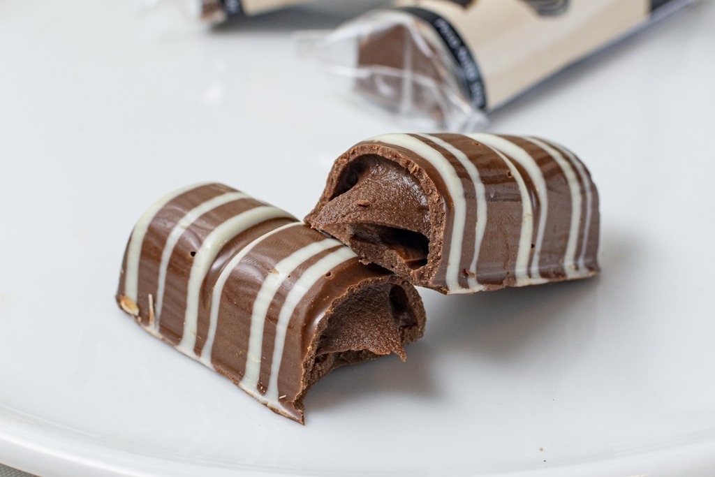 Barrita de chocolate con leche rellena con Marroc y Cacao.