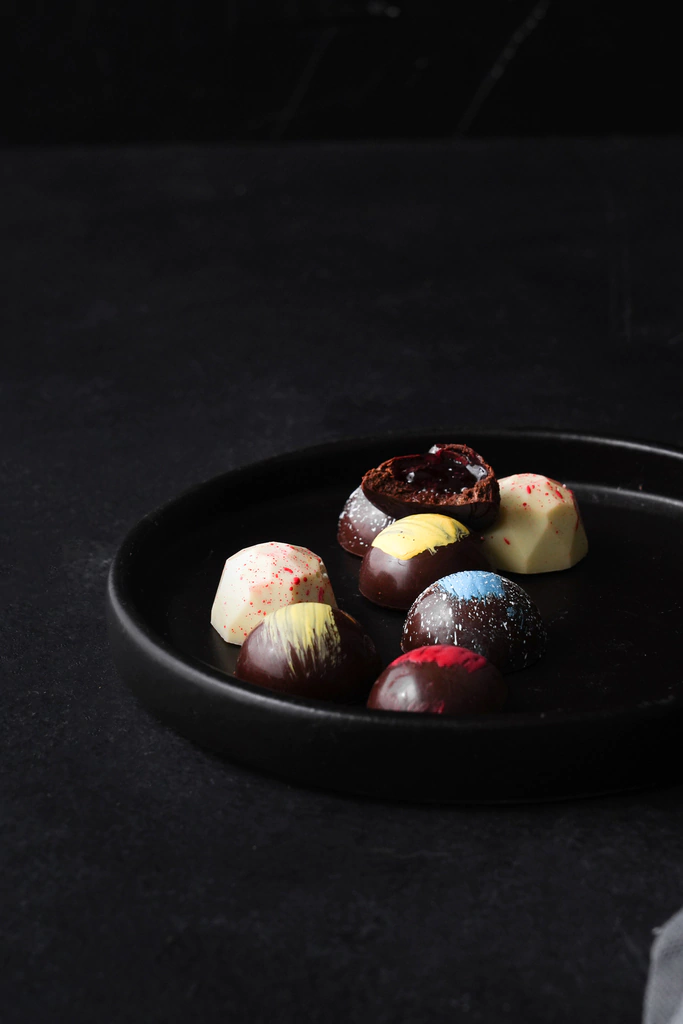 Chocolate Semiamargo con Maracuyá, Dulce de Leche, Frambuesa.